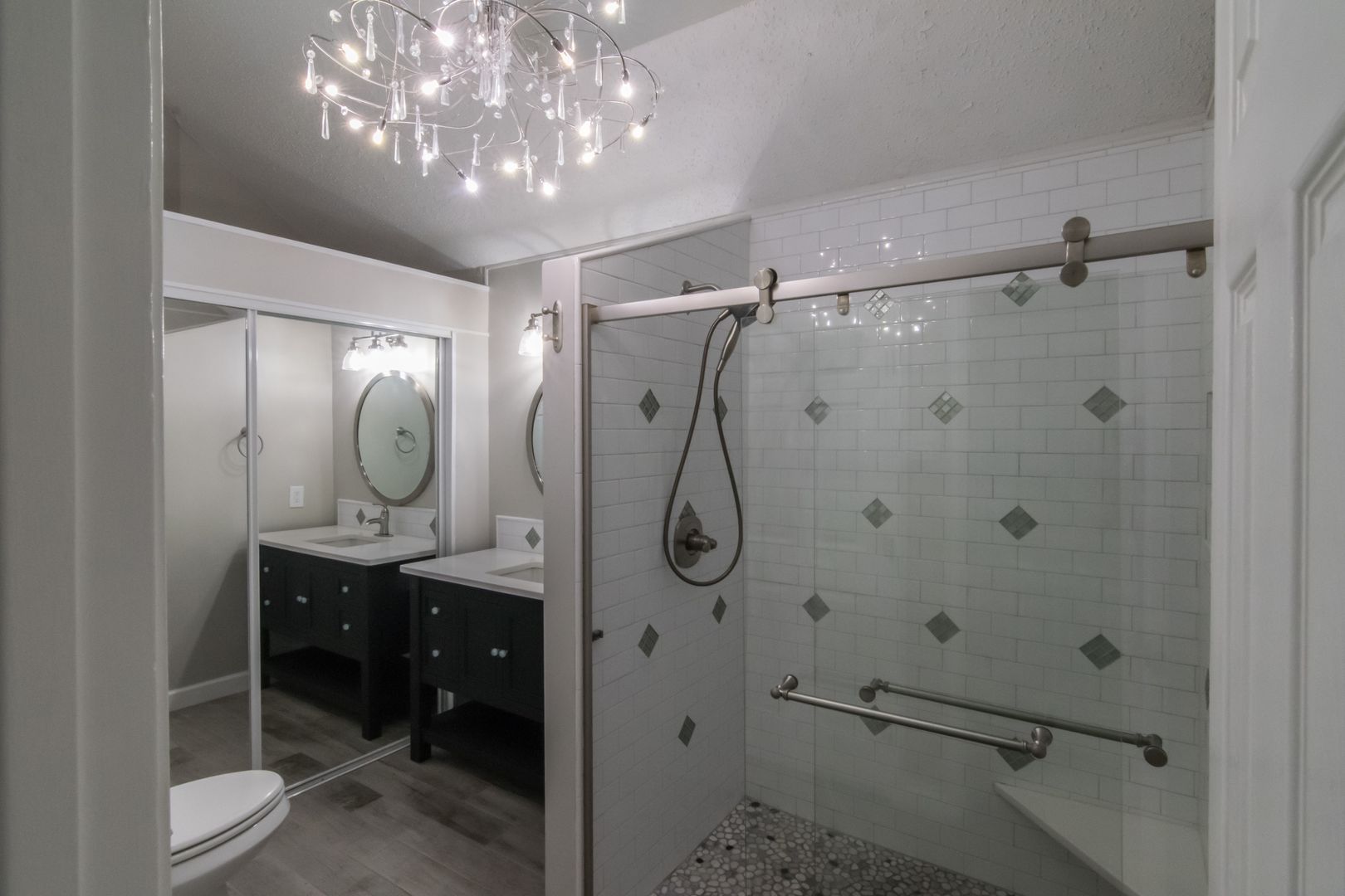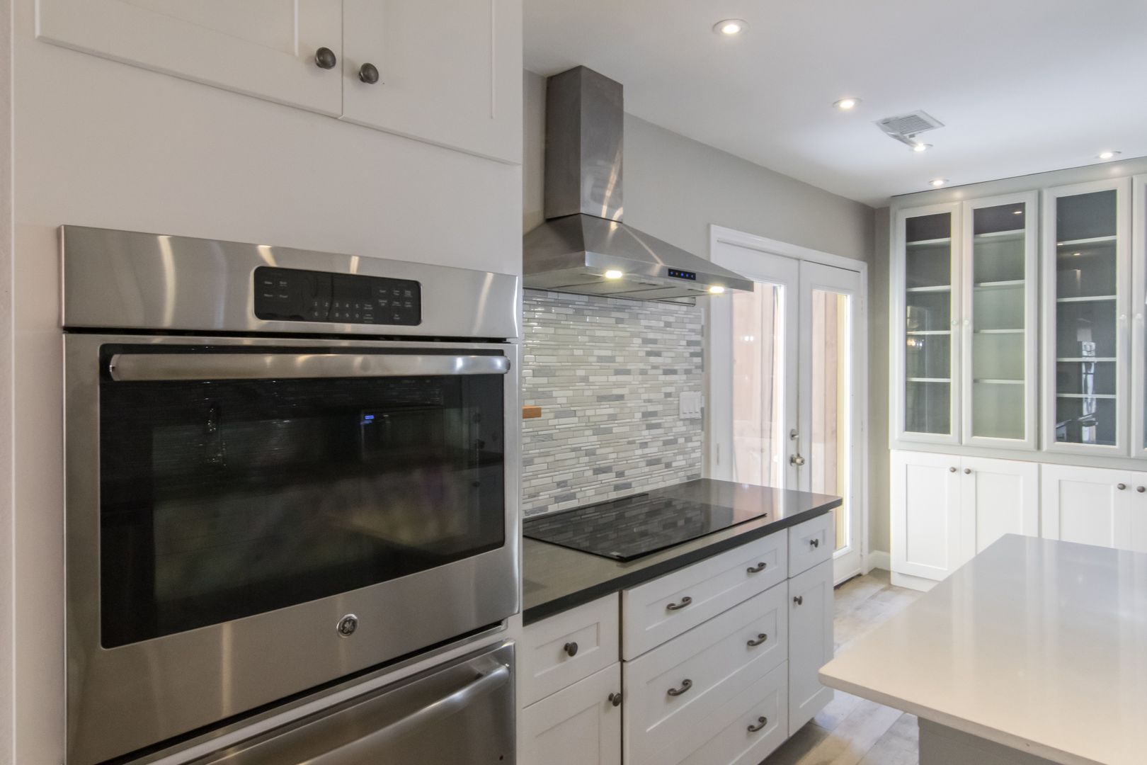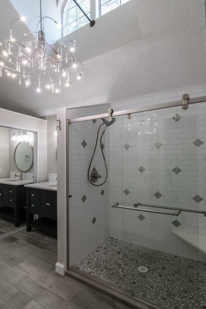Stunning home with all the updates. Grey ceramic plank tile floors. Bathrooms have quartz counters & custom showers. Open kitchen has high end appliances, glass front wood white shaker cabinets and grey quartz countertops. The focal fireplace has a floor to ceiling black quartz stone façade. Other updates include full size stacked washer & dryer, LED lights & fixtures, Nest thermostat. 2 private patios.