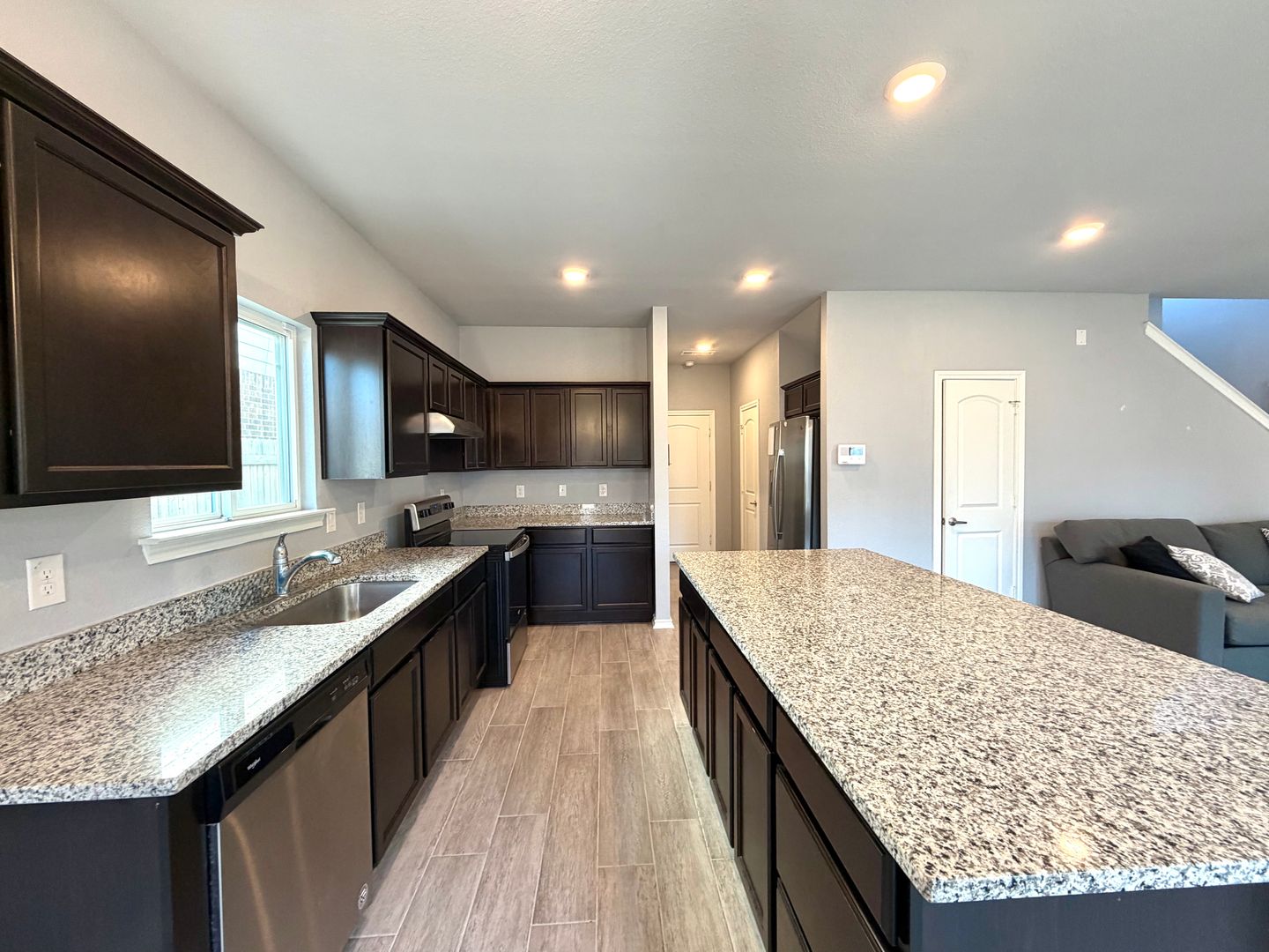 Step inside to an open-concept floorplan featuring a large living area adjacent to the kitchen — perfect for everyday living and entertaining. The kitchen boasts ample cabinet space and countertops, with room for casual dining and meal prep.