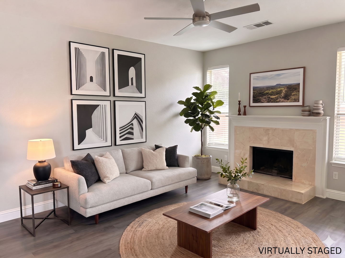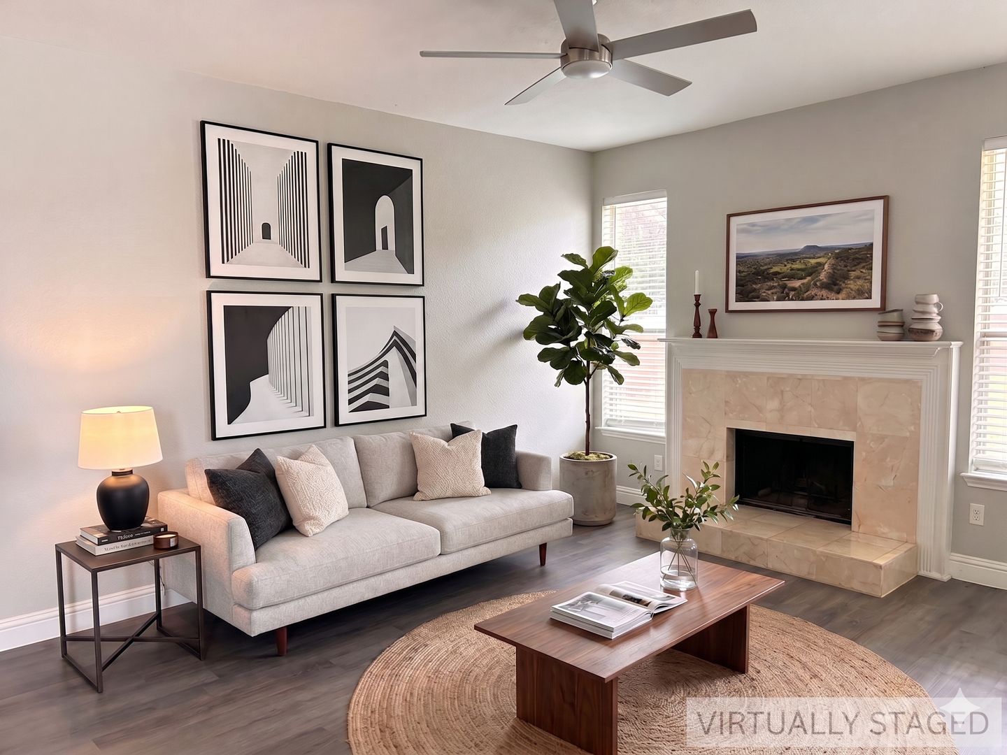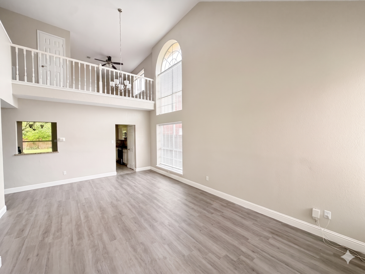 Step inside to a spacious living room with high ceilings and abundant natural light. The open layout flows into a well-appointed kitchen with granite countertops, stainless steel appliances, a center island, breakfast bar, and ample cabinet storage. The adjacent dining area keeps everyone connected.